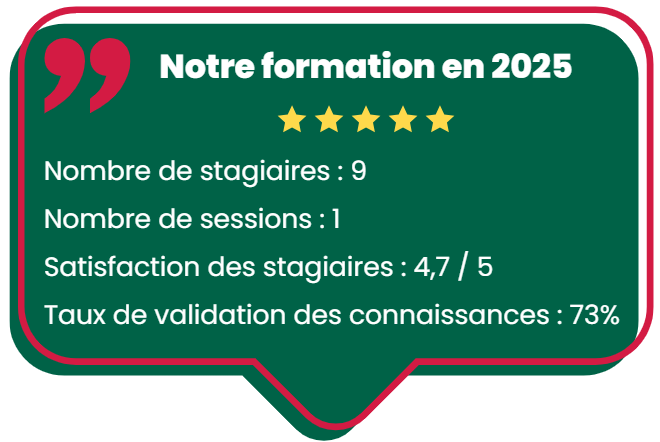 - Dates : consulter le calendrier des formations ou nous contacter.